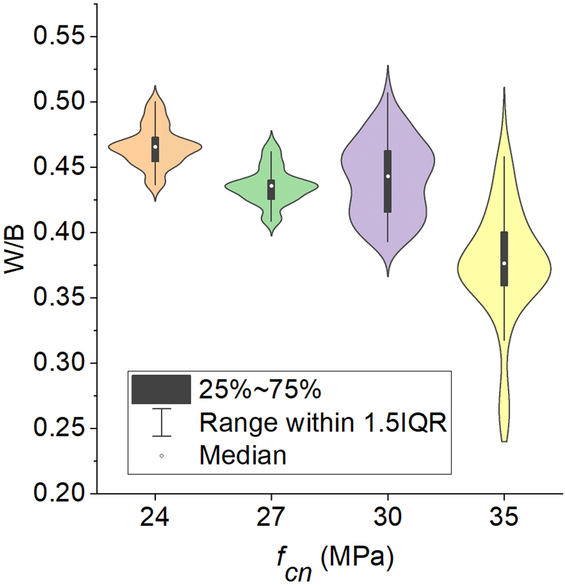 그 결과 24 MPa, 27 MPa, 30 MPa, 35 MPa는 각각 0.45~ 0.50, 0.40~0.45, 0.40~0.45, 0.35~0.40