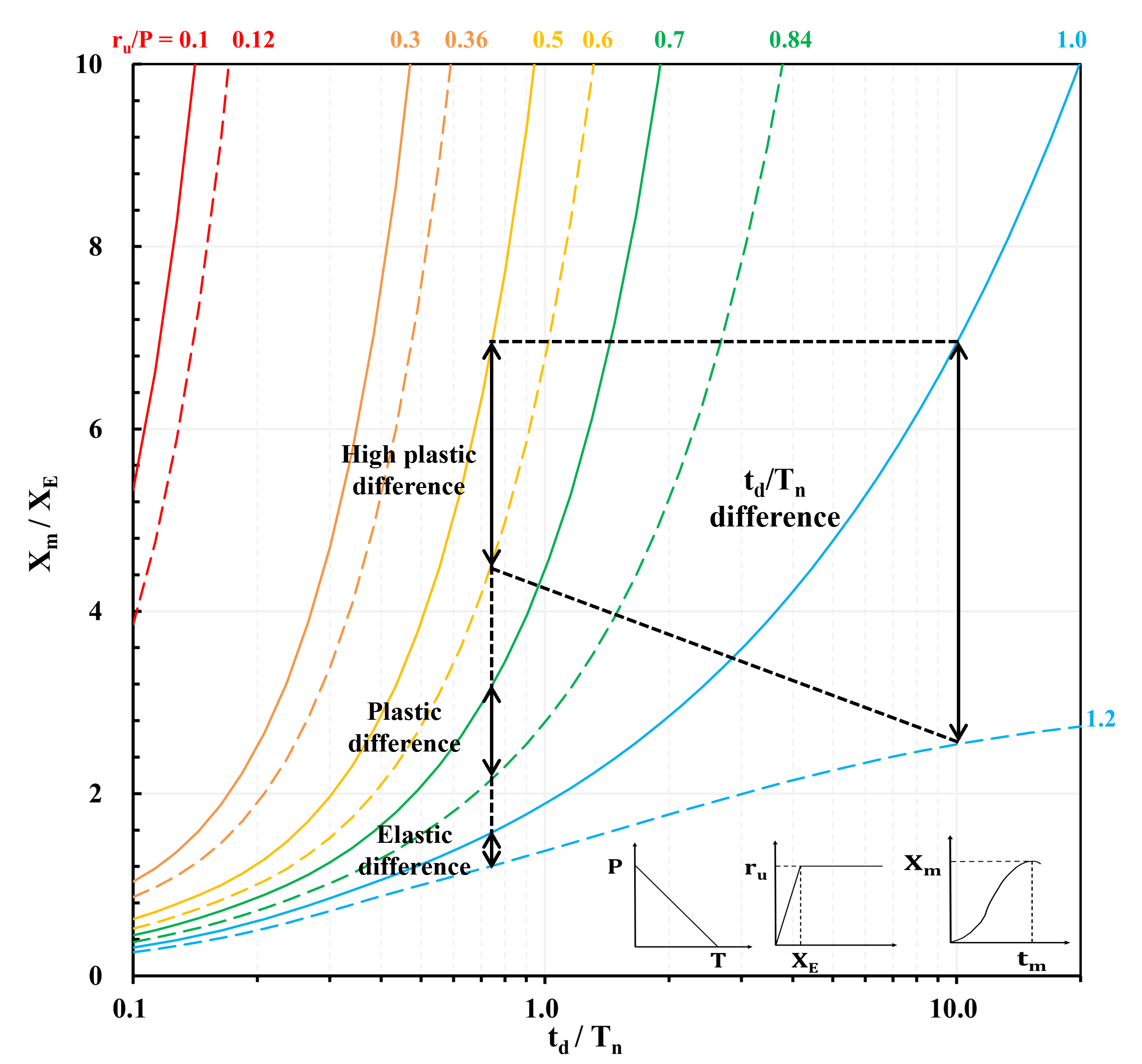 연성비 차이에는 오차가 존재한다. 이 오차는 저항함수의 차이에 기인한다. 응답 차트는 이상화된 이선형 함수를 사용하고, 본 연구에서는 저항함수의 감소까지