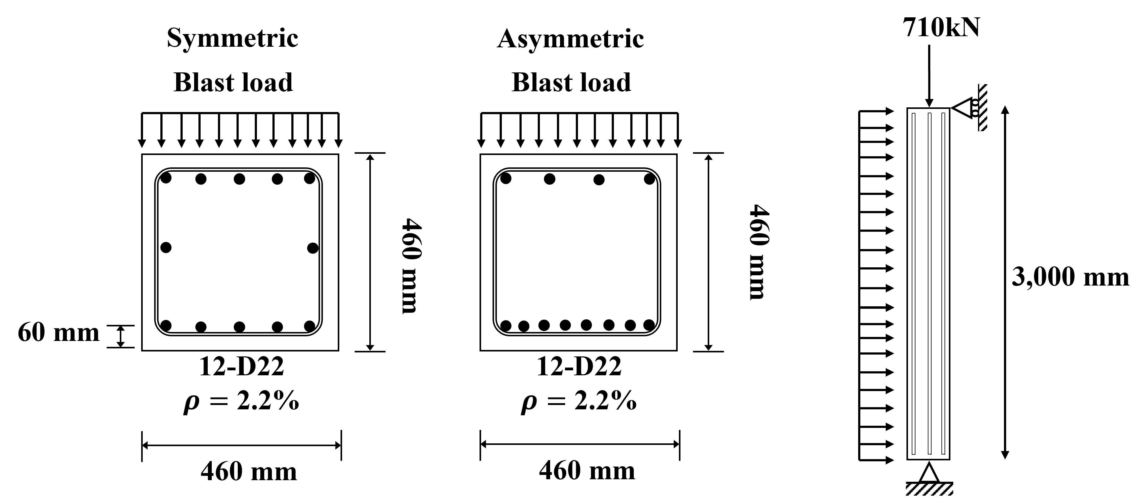 해석을 통해 대칭, 비대칭 단면의 동적 응답을 비교 분석한다. 본 연구 결과는 축하중과 폭발하중을 받는 철근콘크리트 부재의 비대칭 배근에 따른 동적