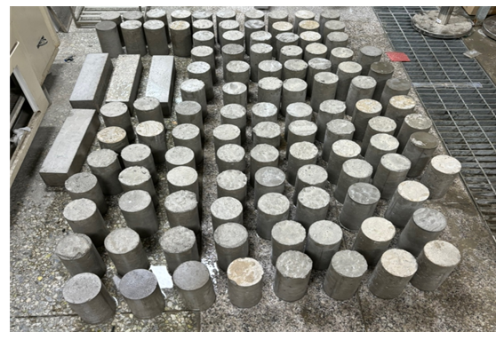 압축강도(compressive strength)는 콘크리트의 내구성을 평가하기 위해 측정하였으며, KS F 2405(KATS 2022)에 따라 시험을 수행하였다. 이를 통해 화학적・물리적 열화가 역학적 성능에 미치는 영향을 정량적으로 분석하였다.