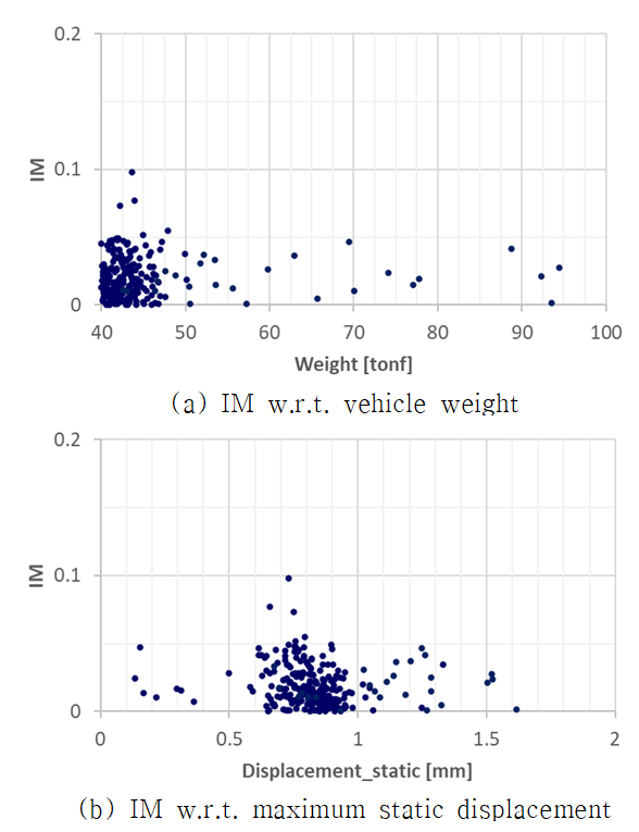 형식의 차량이 다른 형식의 교량을 통과할 때 충격계수가 어떠한 경향을 나타내는지 등에 대한 추가 연구를 진행할 필요성이 있음을 확인하였다.
