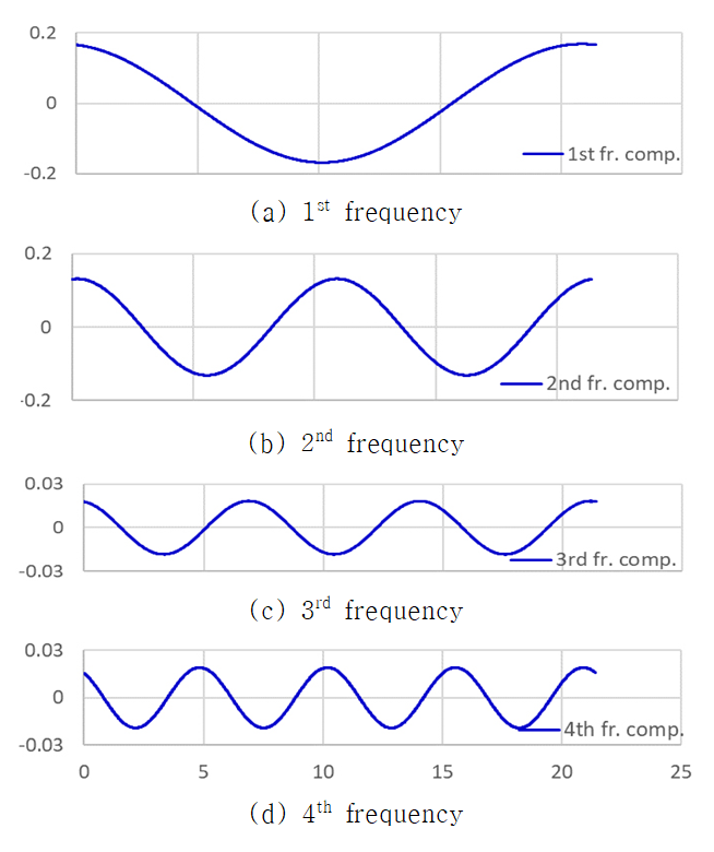 최저차 4개 진동수 성분을 고려하였으며, 5축 저상트레일러의 의사정적 주행시험 결과와 비교하여 1 % 이내의 오차를 확인하였다.