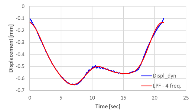 1) 충격계수를 도출하기 위하여 정적 최대변위가 필요하며, 이 연구에서는 저역 통과 필터(LPF) 방법을 사용하여 정적 최대변위를 산출하였다. LPF에는