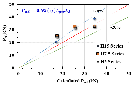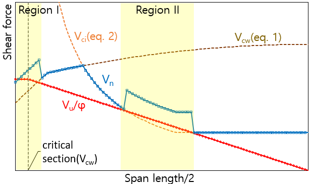 This study presents an experimental investigation into the shear strength of hollow core slabs (HCS) produced by extrusion forming. A total of 21 slab specimens were tested to evaluate both web-shear and flexural-shear strengths. The specimens included PC-HCS with heights of 200 mm, 320 mm, 350 mm, 400 mm, and 500 mm. For each height, specimens were classified into four test methods (TM-1, TM-3, TM-4, TM-5), based on variables such as topping concrete, presence of shear reinforcement, and failure modes. The experimental results were analyzed using strength ratios relative to the design strengths in the KDS. The findings revealed that web-shear specimens without shear reinforcement (TM-1, TM-3) exhibited strength ratios greater than 1.0, while specimens with shear reinforcement (TM-4) showed strength ratios below 1.0. Flexural-shear specimens (TM-5) displayed a high strength ratio distribution and exhibited failure modes approaching flexural failure. Based on these findings, it was concluded that the contribution of shear reinforcement to overall shear strength should be evaluated lower than the design standards. Additionally, the flexural-shear strength evaluation method yielded conservative estimates. Since web-shear failure will typically be evaluated near the support points, it is important to fabricate the slabs in a way that prevents excessive tendon slip.
