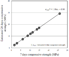 거의 모든 시험체의 실제 측정된 값이 약간 높게 나타났지만 목표 강도 대비 실제 강도 발현율은 평균 약 88%로 나타나 7일 강도를 기준으로 추정한