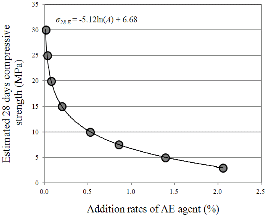 첨가하는 AE제의 양은 0.02~0.05%이며 이 실험 역시 소량의 AE제만으로도 기포를 연행시켜 압축강도를 낮출 수 있었고 사용량을 증가시키면 더