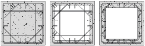 면(제 4 PC면)을 구성한다(Fig. 1(c)). 이렇게 완성된 중공 PC기둥을 현장에서 설치한 후 심부타설한다(Fig. 1(d)). 모서리 대각띠철근은
