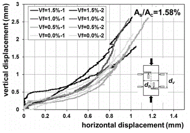 압축력으로 작용하게 되고, 압축력에 대한 전단면의 마찰계수에 의해 전단마찰력의 크기가 결정된다. Fig. 1은 푸시 오프 실험 결과, 전단면에 작용하는