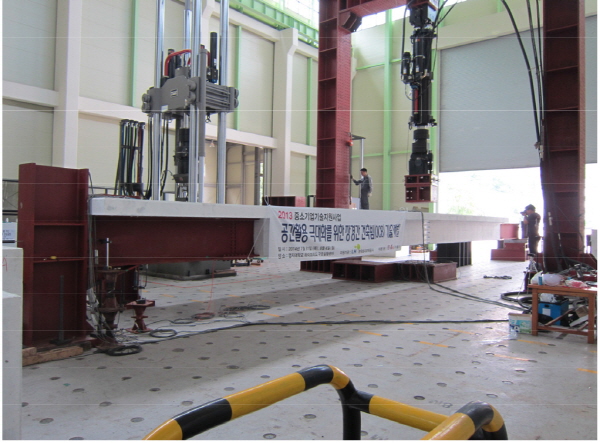 이상까지 하중을 재하한 후에 중앙부에 균열이 지속적으로 확장되고 시험실의 안전상의 문제로 750 kN에서 중단되었다. 그러나 하중을 제거한 후에도