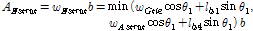 여기서, 는 스트럿 의 최대단면폭, 는 타이 의 최대단면폭, 및 는 콘크리트 스트럿이 수평과 이루는 각, 그리고 및 는 지지판 및 하중판의 폭이다.