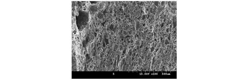 감소하는 포러스콘크리트의 특성으로 골재간의 결합력이 감소하여 강도가 저하되었기 때문으로 판단되며, 부순돌에 비하여 내부에 공극을 가지고 있는 다공성의