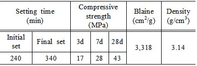 부석이 혼입되었기 때문으로 판단된다. 현행 하천설계기준21) 및 ,하천설계실무요령22) 한국콘크리트공업협동조합연합회(SPS-KCIC0001-0703) 대한 단체표준23)을 기준으로 수계환경에 적용 가능한 배합은 PC I-5-0, PC I-5-5, PC I-5-10, PC I-5-15, PC I-10-0, PC I-10-5,
