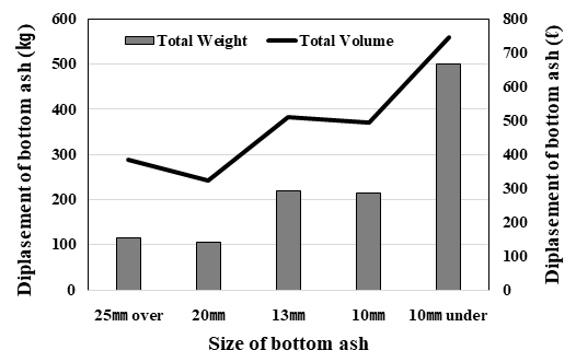 시험에 사용한 석탄저회는 국내 N발전의 Y화력발전소에서 건식공정으로 배출되는 것으로 10 mm 미만 발생분과 10 mm 이상 발생분을 채취하였다.