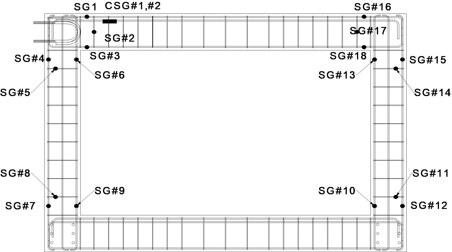 부재의 경우, 상・하단으로부터 띠철근 간격의 절반인 지점의 주근과 띠철근에 부착하였다. 또한 콘크리트 게이지를 보강 전 콘크리트 골조 표면에 부착하고(CSG