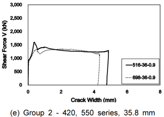 2) 직접전단 초기거동은 전단마찰면에서 발생하는 골재의 맞물림과 콘크리트의 점착력, 철근의 장부작용이 함께 발생하기 때문에 거의 수직에 가까운 하중-균열폭