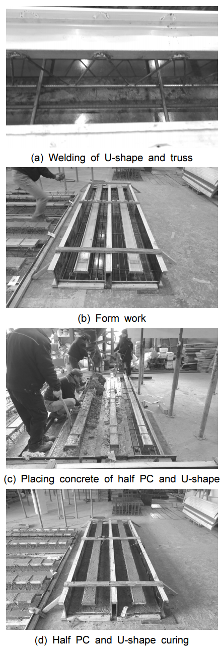 $\quad$5) 상부 압축요소로 콘크리트가 충전된 U형 단면을 사용한 부분 PC 부재는 시공하중에 적절한 구조적 거동특성을 확보하는 것으로 판단된다.