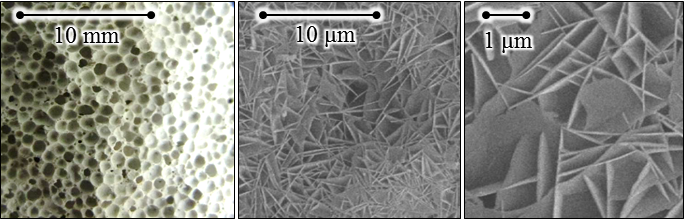 결정체(Kim et al. 2007, Fig. 1)(11)로서, 혼화제로 콘크리트 내에 기포를 생성하여 자연 양생시키는 비구조용 기포 콘크리트(foam concrete)와는 다른 건축자재이다(KS F 4039(KATS