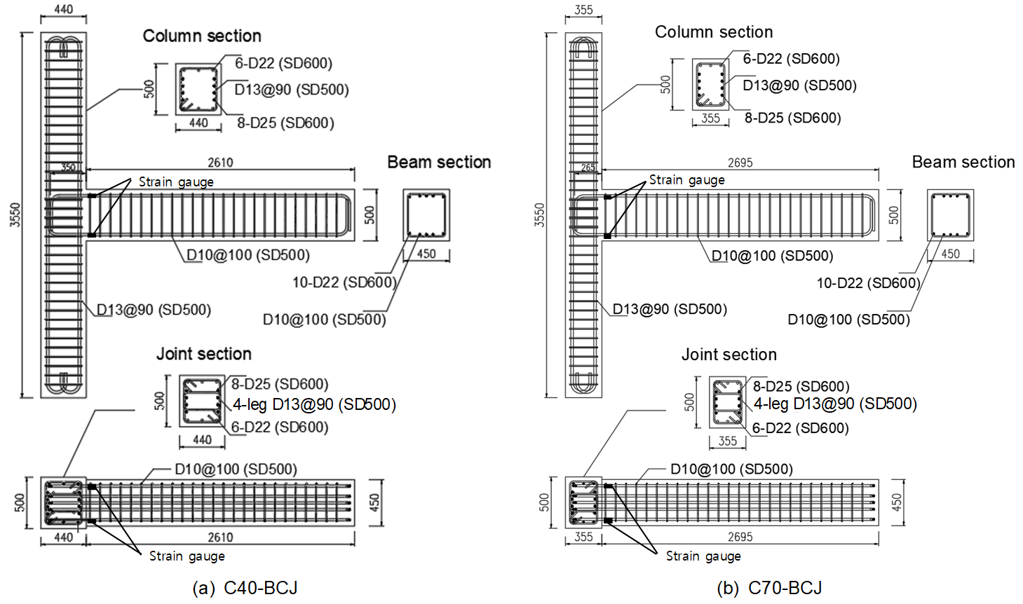 Note: C①-BCJ: ① is design compressive strength of concrete