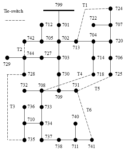 등의 중요 부하에 대한 우선 공급이 있다[15]. 또한, 토폴로지 재구성을 위해 필요한 스위칭 횟수를 최소화하고, 변경된 토폴로지에서 발생하는 선로 손실의 최소화 등이 추가적으로 포함될 수 있다.