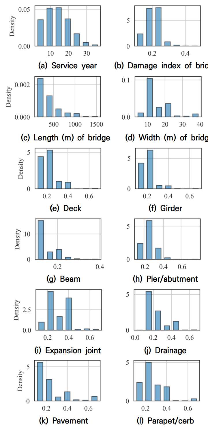 Oh et al. (2010)은 국내 교량에 대한 점검 기록의 절대량 부족을 근본적인 문제로 지적하였으며, 이를 해결하기 위해 인공신경망을 통해 데이터를 생성하여 교량의 손상예측모형을