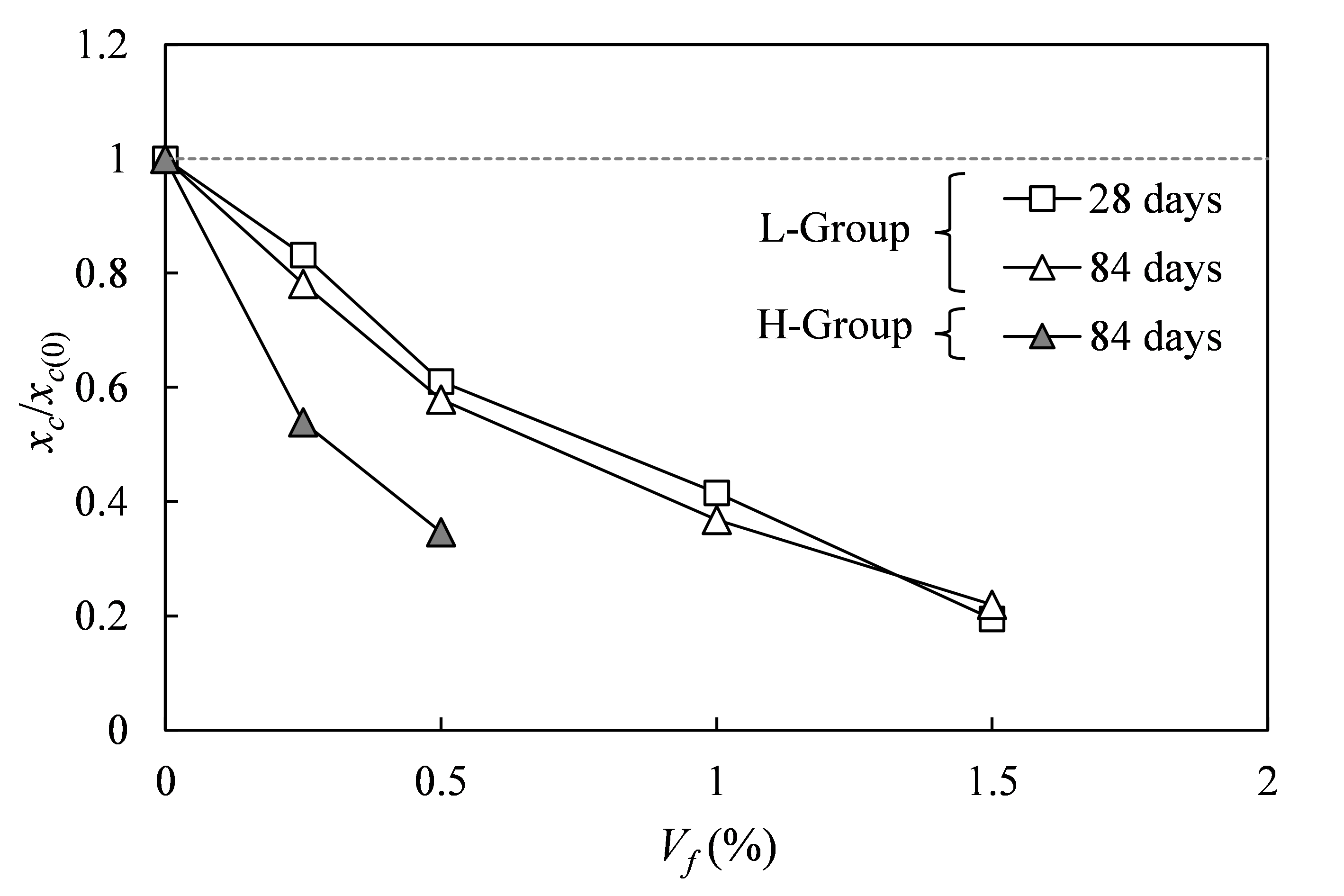 2) 마이크로 강섬유의 혼입은 LWAC의 탄산화 깊이($x_{c}$)를 감소시키는데, 이 감소율은 콘크리트 압축강도($f_{cu}$)가 증가할수록