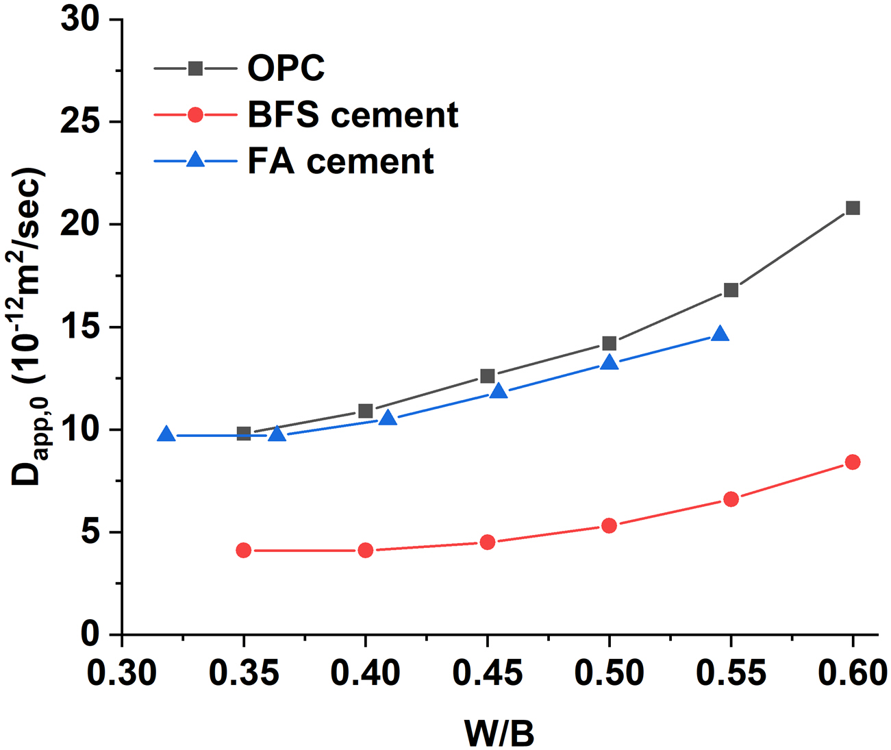 본 장에서는 국내의 구조용 콘크리트의 배합비에 대해 분석하였다. fib MC(CEB 2010)의 확률론적 해석에서는 콘크리트 배합비에 따른 염소이온 확산계수(chloride diffusion coefficient) 추정값을 사용한다. 따라서,