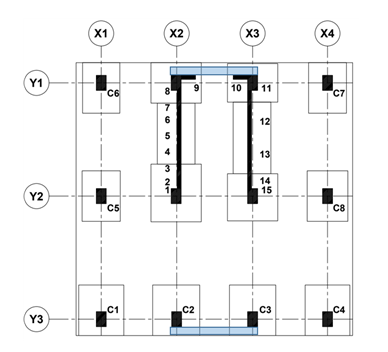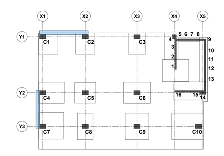 필로티 건물은 기둥과 코어가 있는 필로티 층과 내력벽이 있는 상층부로 구성되는 철근콘크리트 내력벽 구조의 형식으로 수직 비정형성이 매우 크다(Kim 2018). 그 이유로는 주거용으로 계획되는 상층부와 주차 공간 확보를 위한 필로티 층 간의 강성 차이가 매우 크기 때문이다. 또한 코어 벽체가 평면의 모서리