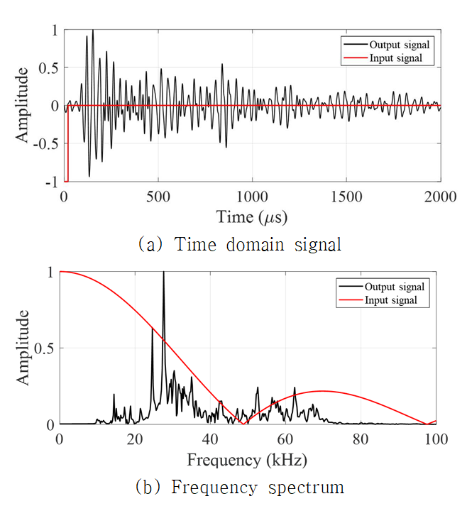 수신부에서는 수신된 신호를 50~100 dB로 증폭하였으며, 10 kHz 및 100 kHz 대역의 밴드패스 필터(band-pass filter)를